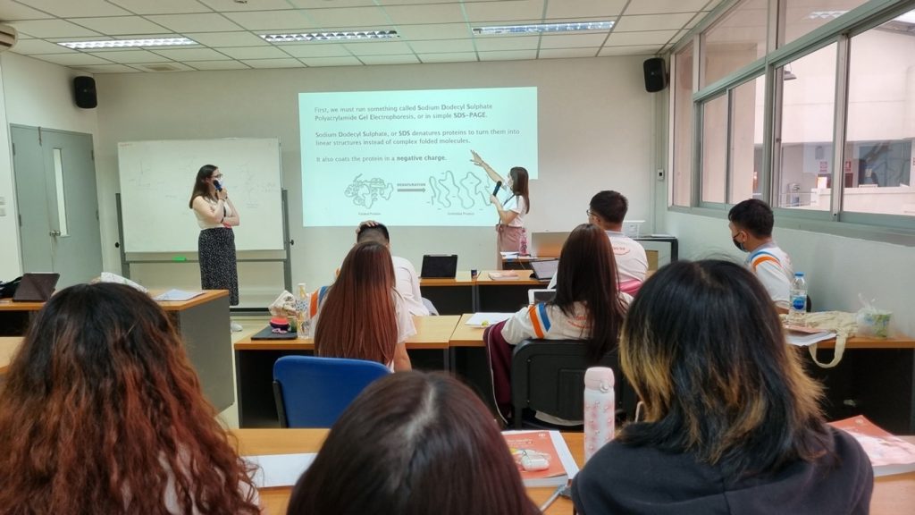 Following the conference Paige and Isabella chose to complete some outreach with 15-16 year old science-engineering students to continue the cycle of knowledge exchange. They explained the process of higher education in the UK and the SoCoBio DTP programme to students, as well as their routes into academia. Then, using elements of their experience from their iPIPS placement they explained about what biotechnology is, it’s importance and how it is very advanced within Thailand.